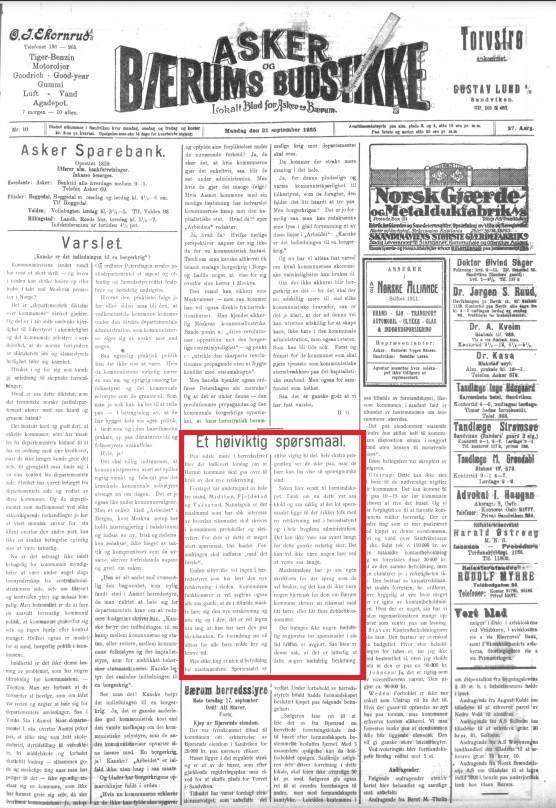 Vv 3: Språkdebatt. Ny rettskrivning ble innført i 1917, men ikke alle tok den i bruk. Dette ble til en sak i Bærum herredsstyre, og saken ble omtalt på første side i Asker og Bærums Budstikke (klippet ved siden av). Avisen fulgte ikke 1917-rettskrivningen.