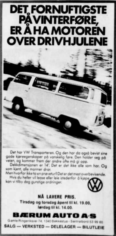 Vv 8: Vinterføre. Annonsen ved siden av antyder én mulig løsning på eventuelle fremkommelighetsproblemer på vinterføre. Ford, som har produsert bloggerens bil, har valgt en annen løsning: Motor og drivhjul foran. Bloggeren tror det gir best fremkommelighet. Men best fremkommelighet blir det uten vinterføre. Bloggeren kjører derfor dieselbil.