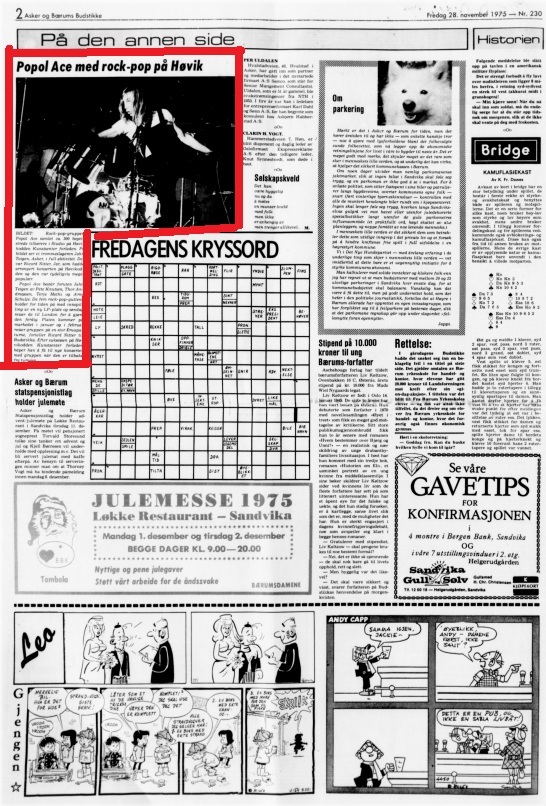 Vv 5: Purple-Jahn. Før Jahn Teigen ble kjent som sanger, hadde han en fortid bl.a. som slagverker i bandet Purple Ace. Asker og Bærums Budstikke dokumenterte dette med tekst og bilde.