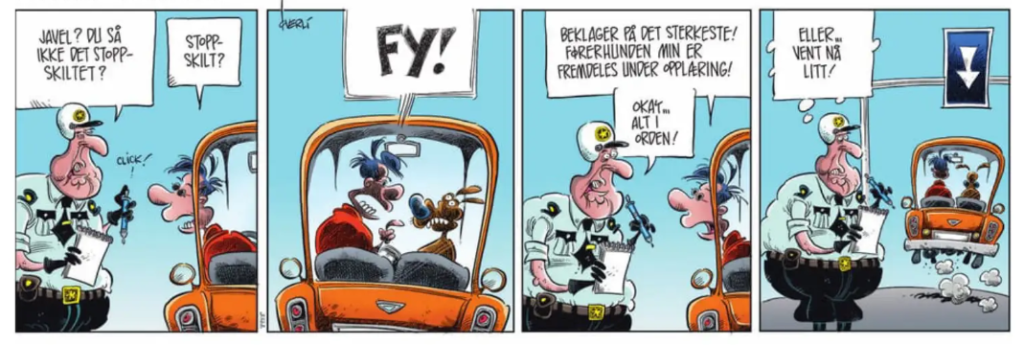 260324: Trafikksyn. Tegneserien nedenfor dukket opp mens bloggeren planla sin transport til øyelegen, der han skal opereres for grå stær i øye nr. 2 (av 2). Operasjonen tar 15-20 minutter og er mindre plagsom enn å fjerne tannsten. Bloggerens transport blir med Pasientreiser, ikke med egen bil.